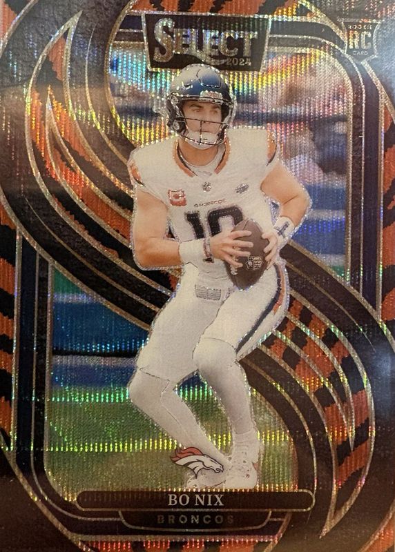 This card is 1 of 275 Bo Nix's card variations in the 2024 Select set being tracked by Sports Card Investor, including Club Level, Concourse, Field Level, Premier Level, and Suite Level.