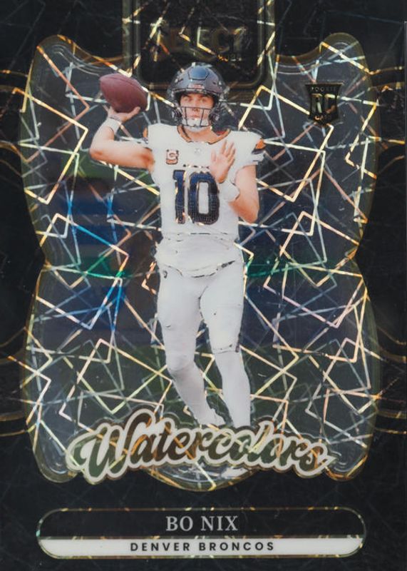 Bo Nix 2024 Select #23 Watercolors - Black /1 Rookie SGC 9 Price Guide