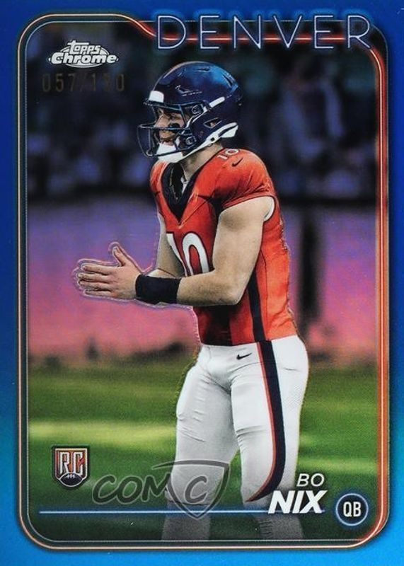 2024 Topps Chrome Bo Nix RC Blue Refractor /150 Denver Broncos NFL #206