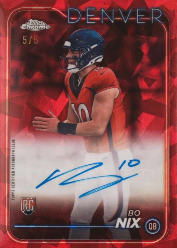 Bo Nix 2024 Topps Chrome Sapphire Edition #206 Red /5 Rookie RAW Price Guide