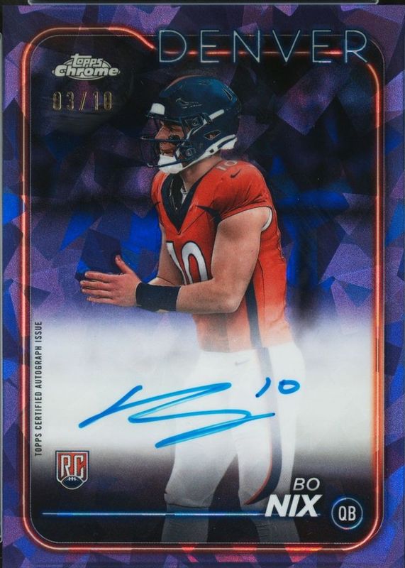 Bo Nix 2024 Topps Chrome Sapphire Edition #RA-BNI Rookie Autographs - Purple /10 RAW Price Guide