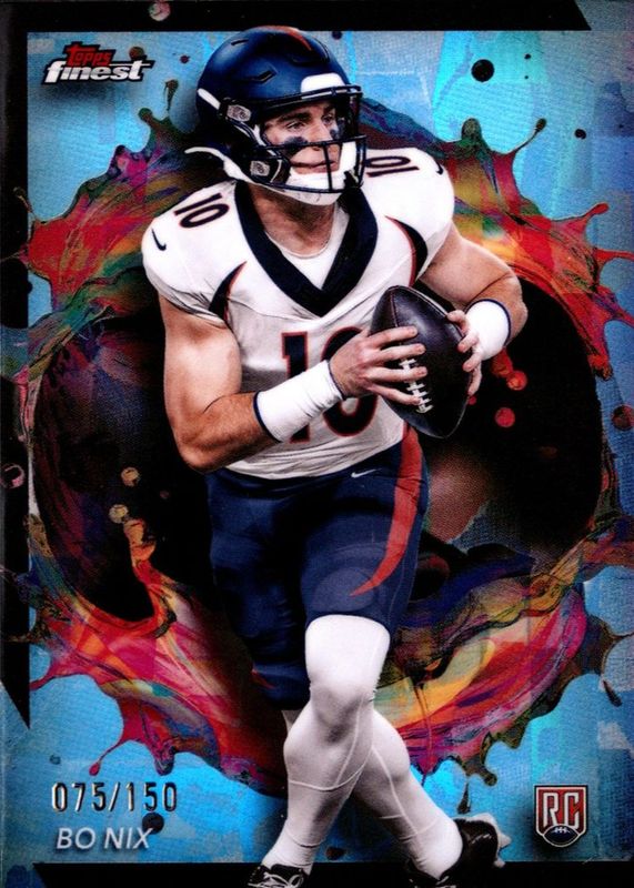 The Bo Nix 2024 Topps Finest #249 Rare - Sky Blue Refractor /150 Rookie card in Raw condition has not changed in price in the last 30 days and was last sold for $12.00 .
