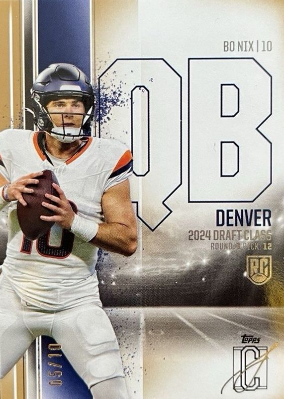 Bo Nix 2024 Topps Signature Class #100 Gold /10 Rookie RAW Price Guide