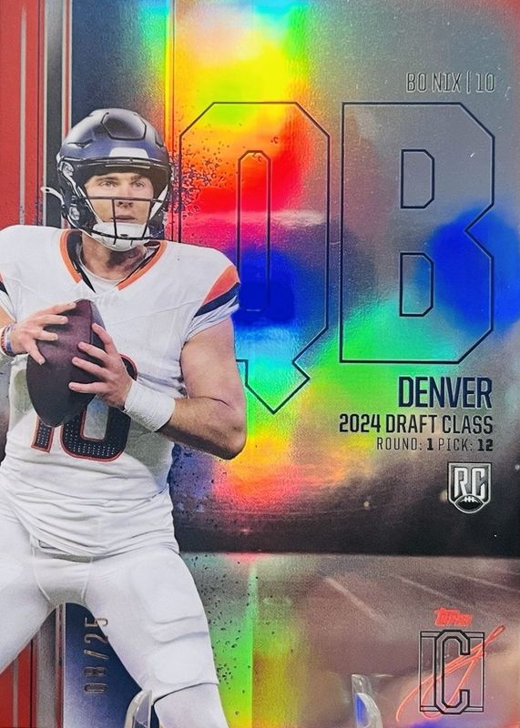 Recent Sales of Bo Nix 2024 Topps Signature Class #RCV-40 Rookie Chrome Variation - Red Refractor /25 Raw