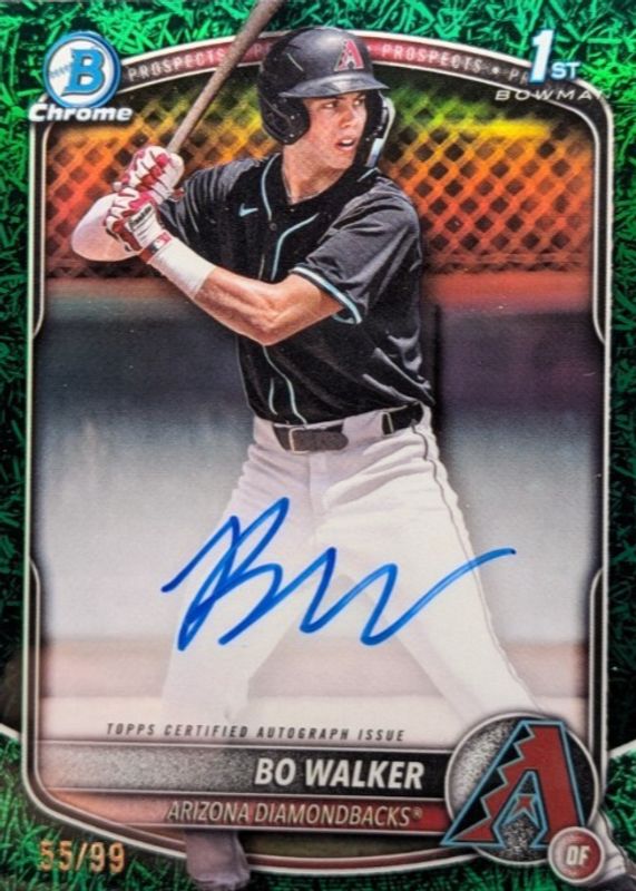 Bo Walker 2025 Bowman Chrome Green Grass 1st Bowman Auto 08/99 Arizona Dbacks