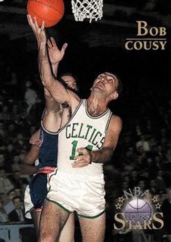 The Bob Cousy 1996 Topps Stars #10 Base card is 1 of 17 Bob Cousy's card variations in the 1996 Topps Stars set being tracked by Sports Card Investor, including #110 Base, #60 Base, #10 Finest, #110 Finest, and #60 Finest.