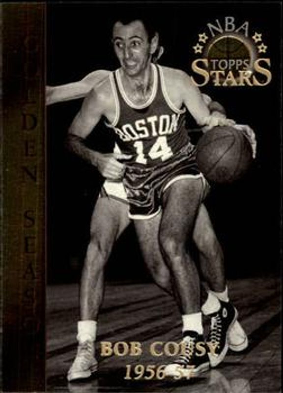 The Bob Cousy 1996 Topps Stars #60 Members Only card is 1 of 17 Bob Cousy's card variations in the 1996 Topps Stars set being tracked by Sports Card Investor, including #110 Base, #60 Base, #10 Base, #10 Finest, and #110 Finest.