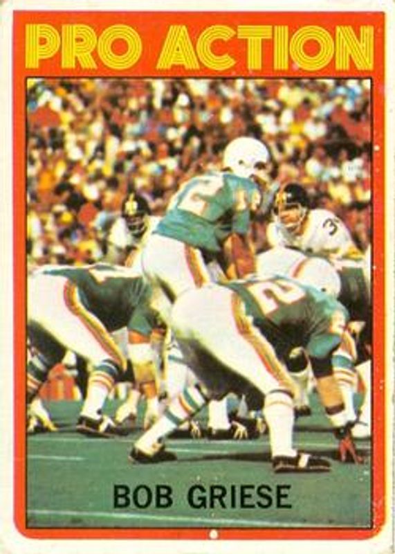 The Bob Griese 1972 Topps #132 Base card is 1 of 5 Bob Griese's card variations in the 1972 Topps set being tracked by Sports Card Investor, including #272 Base, #79 Base, #80 Base, and #132 In Action.
