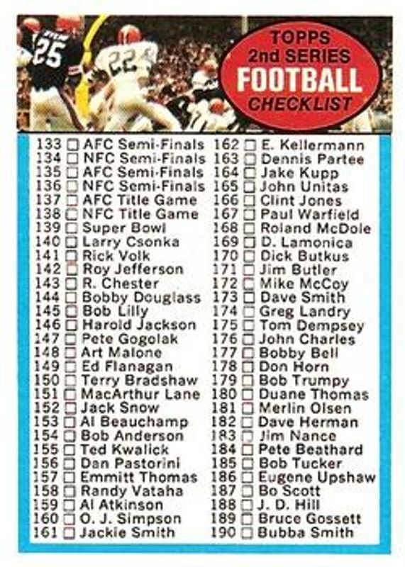 Other popular players in the 1972 Topps set include Larry Csonka, Bubba Smith, Dick Butkus, Floyd Little, and George Blanda.