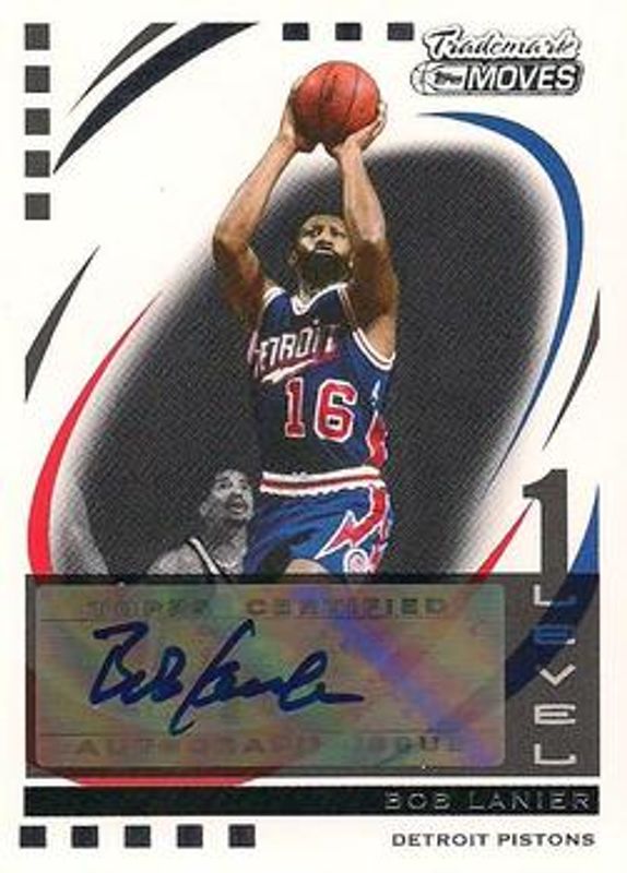 The Bob Lanier 2006 Topps Trademark Moves #100 Autographs /75 card is 1 of 10 Bob Lanier's card variations in the 2006 Topps Trademark Moves set being tracked by Sports Card Investor, including Base /149, Foil /75, Rainbow /35, Wood /19, and Wood Red /10.