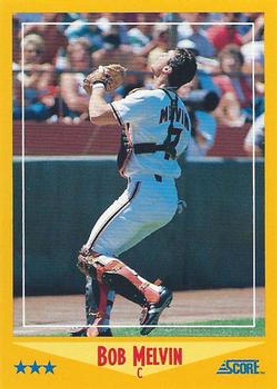 The Bob Melvin 1988 Score #477 Base card is 1 of 2 Bob Melvin's card variations in the 1988 Score set being tracked by Sports Card Investor, including Glossy.