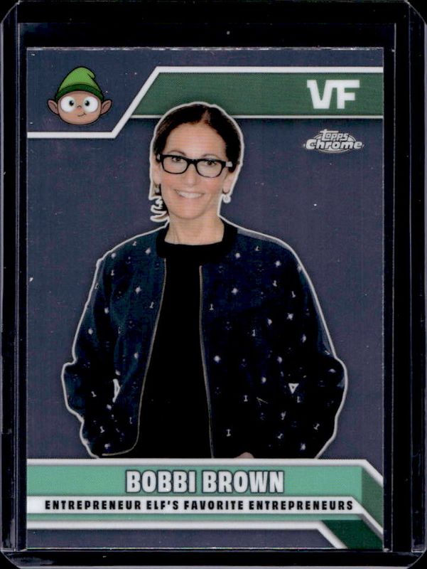 The Bobbi Brown 2025 Topps Chrome VeeFriends #EE-BB Entrepreneur Elf’s Favorite Entrepreneurs card is 1 of 10 Bobbi Brown's card variations in the 2025 Topps Chrome VeeFriends set being tracked by Sports Card Investor, including Entrepreneur Elf’s Favorite Entrepreneurs Autographs, Entrepreneur Elf’s Favorite Entrepreneurs - VeeFriends Green Refractor /99, Entrepreneur Elf’s Favorite Entrepreneurs - Gold Refractor /50, Entrepreneur Elf’s Favorite Entrepreneurs - Orange Refractor /25, and Entrepreneur Elf’s Favorite Entrepreneurs - Black Refractor /10.