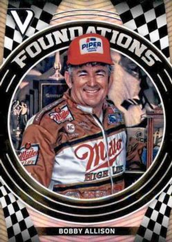 The Bobby Allison 2018 Victory Lane NASCAR #F15 Foundations card is 1 of 49 Bobby Allison's card variations in the 2018 Victory Lane NASCAR set being tracked by Sports Card Investor, including #60 Base, #97 Base, #60 Silver, #97 Silver, and #60 Gold /99.