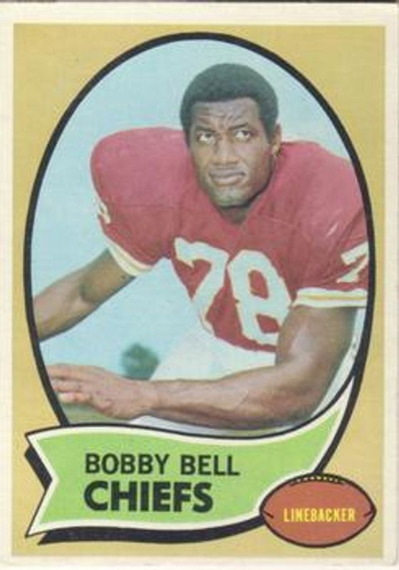 The Bobby Bell 1970 Topps #154 Base card is 1 of 2 Bobby Bell's card variations in the 1970 Topps set being tracked by Sports Card Investor, including Posters.