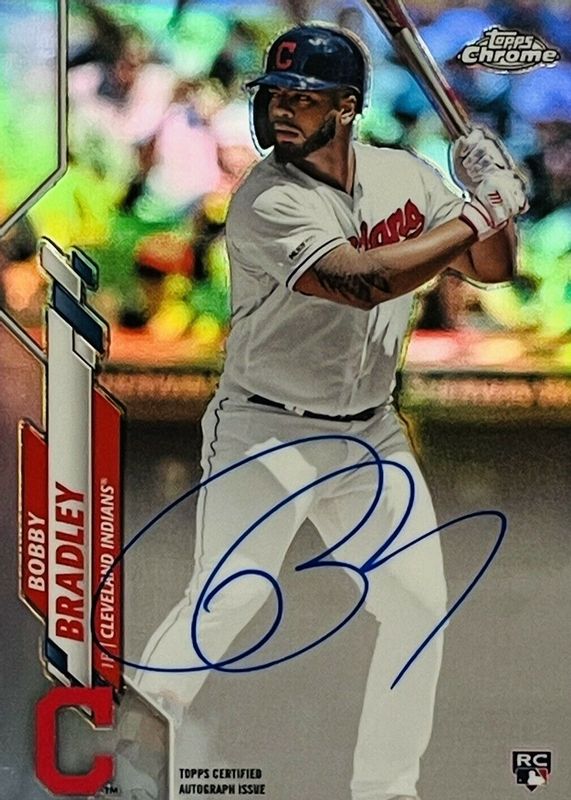 Bobby Bradley's Baseball cards are available in at least 17 sets. Bobby Bradley's biggest 7-day price movers are 2020 Topps Chrome #RA-BB Rookie Auto - Refractor /499, 2000 Topps Finest #102 Base, and 2000 Topps Finest #102 Refractor /1000.