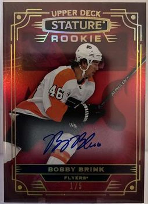 Bobby Brink 2022 Upper Deck Stature #154 Autographs - Photo Variant Red /5 Rookie RAW Price Guide