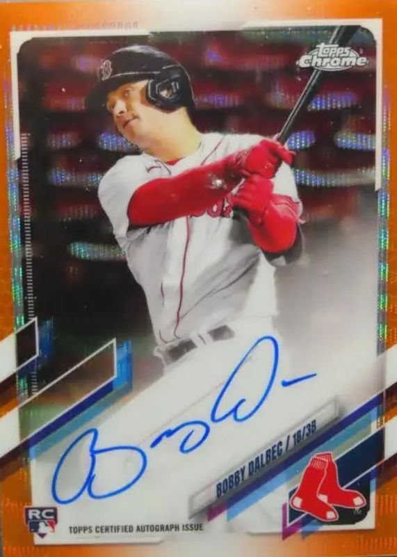 Best Prices Available For Sale of Bobby Dalbec 2021 Topps Chrome #RA-BD Rookie Auto - Orange Wave Refractor /25