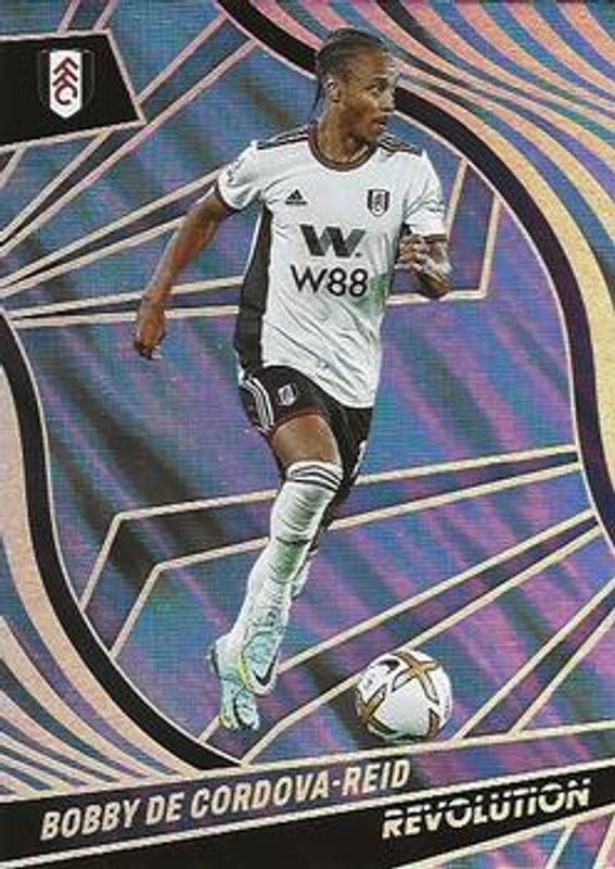 The Bobby De Cordova-Reid 2022 Revolution Premier League #111 Lava /10 card is 1 of 18 Bobby De Cordova-Reid's card variations in the 2022 Revolution Premier League set being tracked by Sports Card Investor, including Base, Diamond, Disco, Fractal, and Galactic.