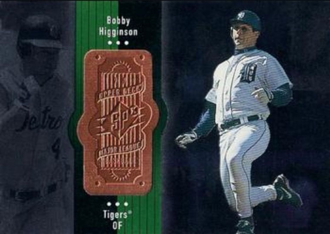 The Bobby Higginson 1998 SPx Finite #83 Base /9000 card is 1 of 3 Bobby Higginson's card variations in the 1998 SPx Finite set being tracked by Sports Card Investor, including Radiance /4500, and Spectrum /2250.
