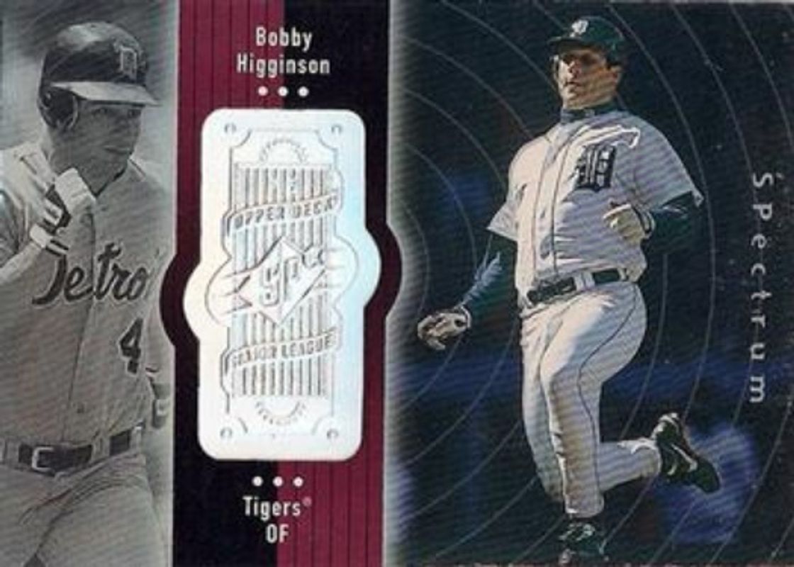 The Bobby Higginson 1998 SPx Finite #83 Spectrum /2250 card is 1 of 3 Bobby Higginson's card variations in the 1998 SPx Finite set being tracked by Sports Card Investor, including Base /9000, and Radiance /4500.