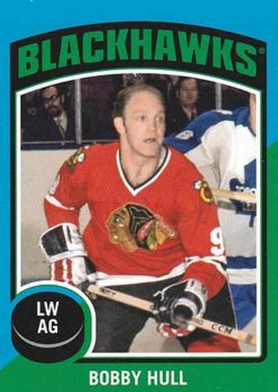 The Bobby Hull 2014 O-Pee-Chee #ST-14 Stickers card is 1 of 9 Bobby Hull's card variations in the 2014 O-Pee-Chee set being tracked by Sports Card Investor, including Base, Rainbow, Red, Retro, and Retro Blank Backs.