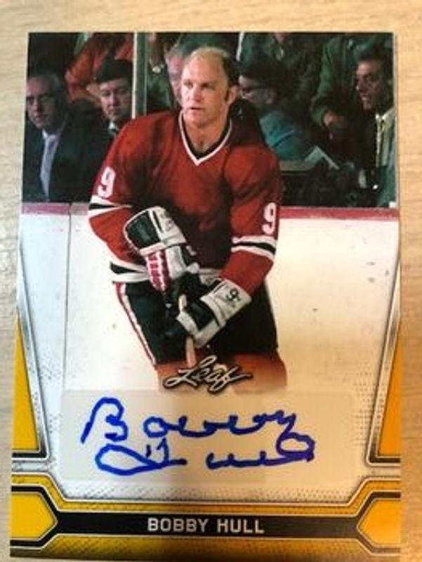 The Bobby Hull 2021 Leaf #BA-BH1 Autographs card is 1 of 2 Bobby Hull's card variations in the 2021 Leaf set being tracked by Sports Card Investor, including Autographs - Gold.