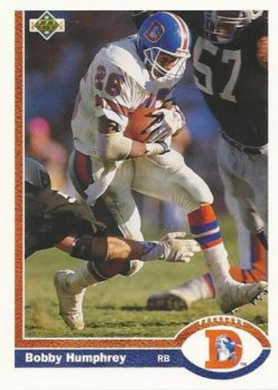 The Bobby Humphrey 1991 Upper Deck #142 Base card is 1 of 3 Bobby Humphrey's card variations in the 1991 Upper Deck set being tracked by Sports Card Investor, including Base, and Game Breakers.