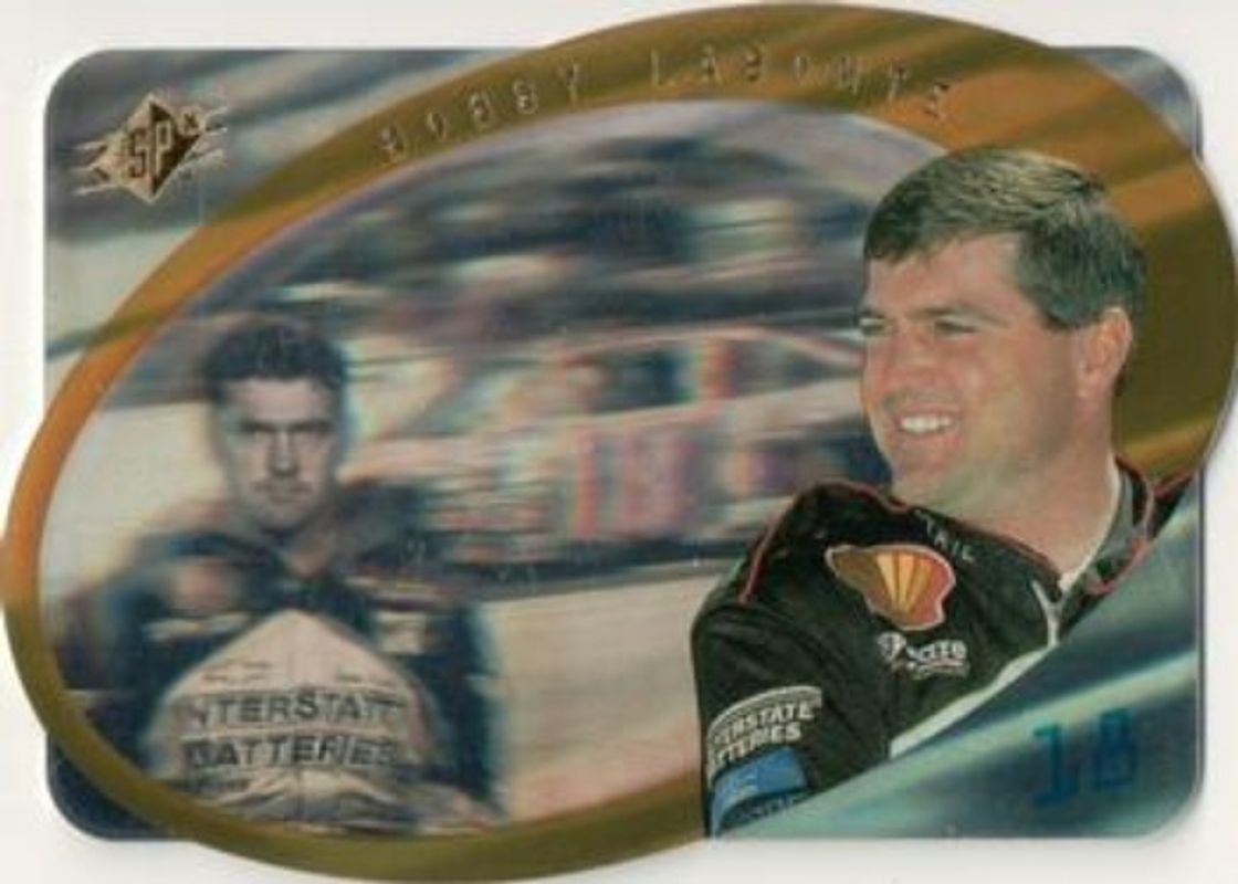 The Bobby Labonte 1996 SPx #18 Gold card is 1 of 2 Bobby Labonte's card variations in the 1996 SPx set being tracked by Sports Card Investor, including Base.