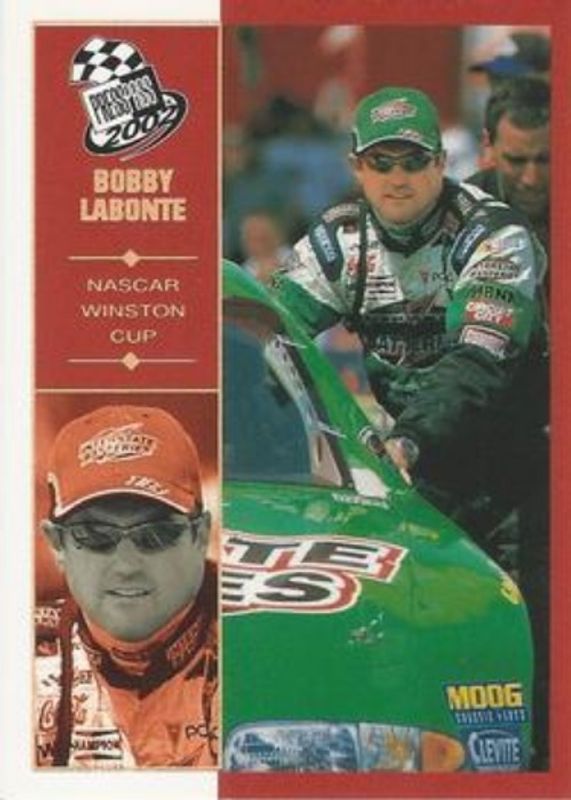 The Bobby Labonte 2002 Press Pass #P18 Platinum card is 1 of 14 Bobby Labonte's card variations in the 2002 Press Pass set being tracked by Sports Card Investor, including Base, Autographs, Cup Chase, Showman, and Top Shelf.