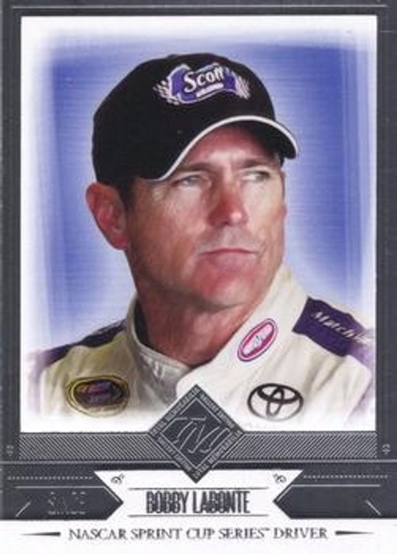 The Bobby Labonte 2014 Press Pass Total Memorabilia #16 Base card is 1 of 4 Bobby Labonte's card variations in the 2014 Press Pass Total Memorabilia set being tracked by Sports Card Investor, including Red, Gold /175, and Black & White /99.