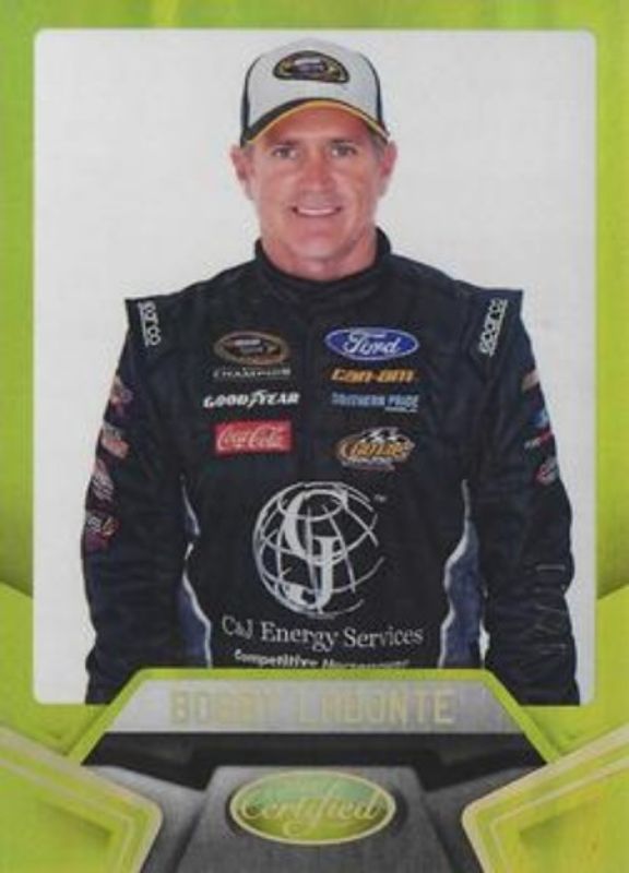 The Bobby Labonte 2016 Certified NASCAR #36 Mirror Gold /15 card is 1 of 30 Bobby Labonte's card variations in the 2016 Certified NASCAR set being tracked by Sports Card Investor, including Base /99, Mirror Red /25, Mirror Blue /20, Mirror Orange /15, and Mirror Silver /15.