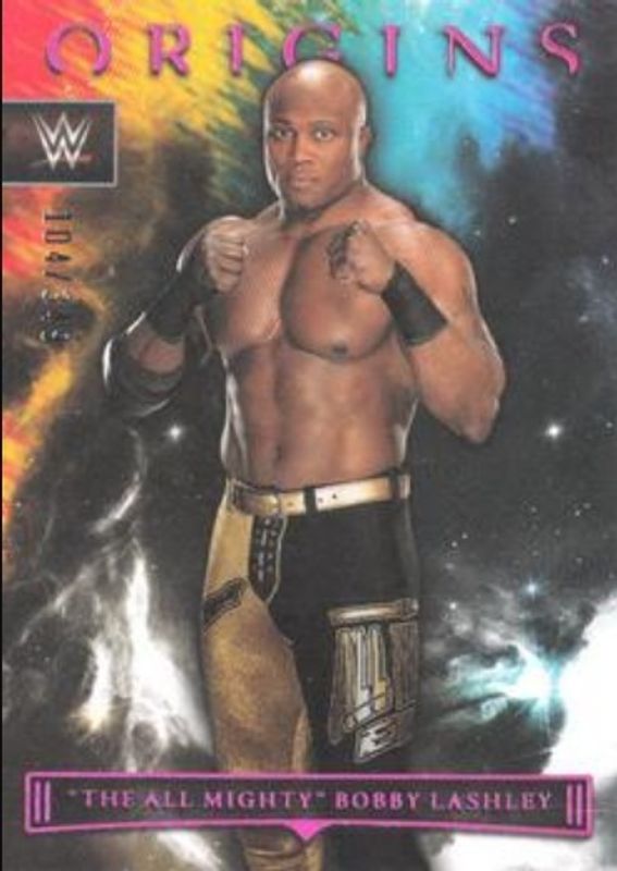 The Bobby Lashley 2023 Chronicles WWE #141 Pink /199 card is 1 of 45 Bobby Lashley's card variations in the 2023 Chronicles WWE set being tracked by Sports Card Investor, including #354 Base, #87 Base, #141 Base, #238 Base, and #238 Bronze.