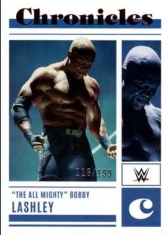 The Bobby Lashley 2023 Chronicles WWE #87 Red /199 card is 1 of 45 Bobby Lashley's card variations in the 2023 Chronicles WWE set being tracked by Sports Card Investor, including #354 Base, #87 Base, #141 Base, #238 Base, and #238 Bronze.
