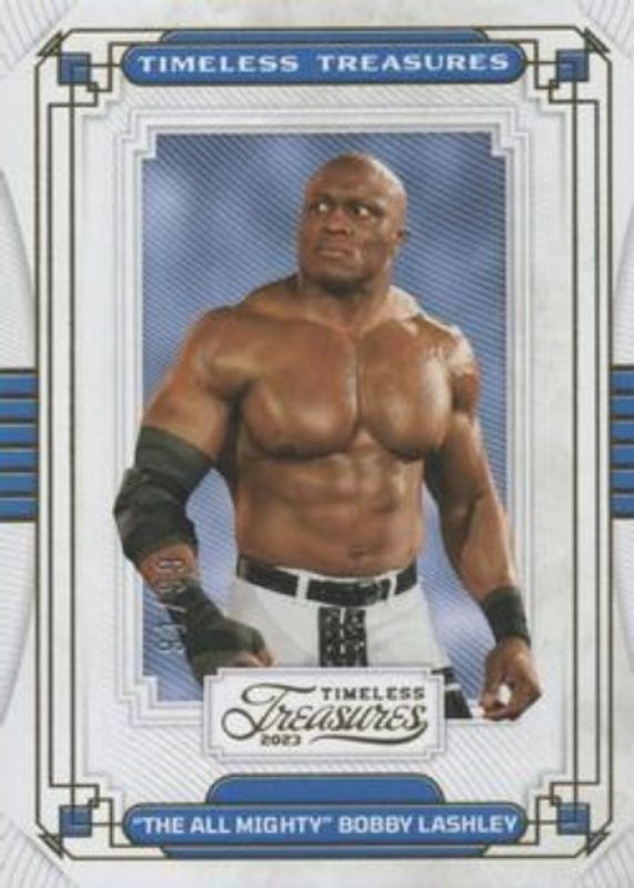 The Bobby Lashley 2023 Chronicles WWE #TT-17 Timeless Treasures /99 card is 1 of 45 Bobby Lashley's card variations in the 2023 Chronicles WWE set being tracked by Sports Card Investor, including #354 Base, #87 Base, #141 Base, #238 Base, and #238 Bronze.