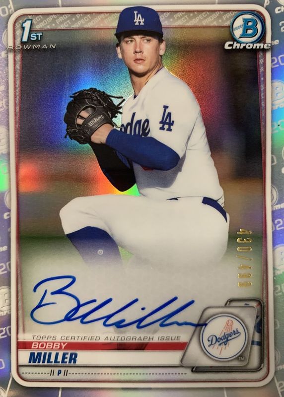 2020 Bowman Chrome Draft 1 Auto Refractor Bobby Miller Los Angelese Dodgers /499