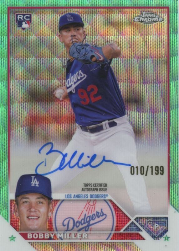 Recent Sales of Bobby Miller 2023 Topps Chrome Update #RA-BM Autographs - Aqua Wave Refractor /199 Rookie Raw