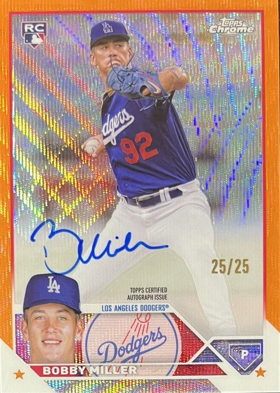 Auctions Ending Soon for Bobby Miller 2023 Topps Chrome Update #RA-BM Autographs - Orange Wave Refractor /25 Rookie RAW