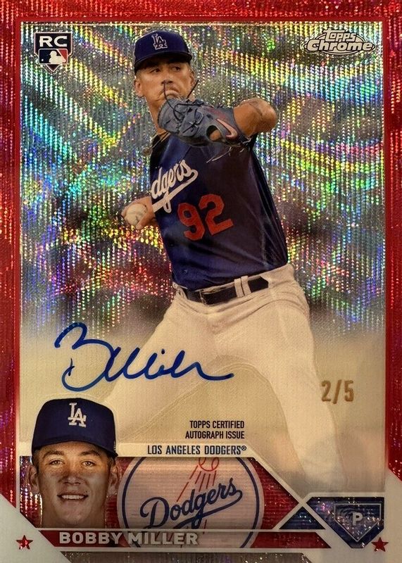 Auctions Ending Soon for Bobby Miller 2023 Topps Chrome Update #RA-BM Autographs - Red Wave Refractor /5 Rookie RAW