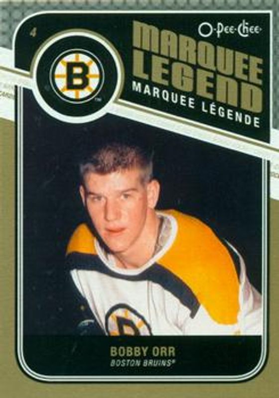 The Bobby Orr 2011 O-Pee-Chee #544 Base card is 1 of 7 Bobby Orr's card variations in the 2011 O-Pee-Chee set being tracked by Sports Card Investor, including Rainbow, Retro, Retro Blank Back, Black Rainbow /100, and Marquee Legends.