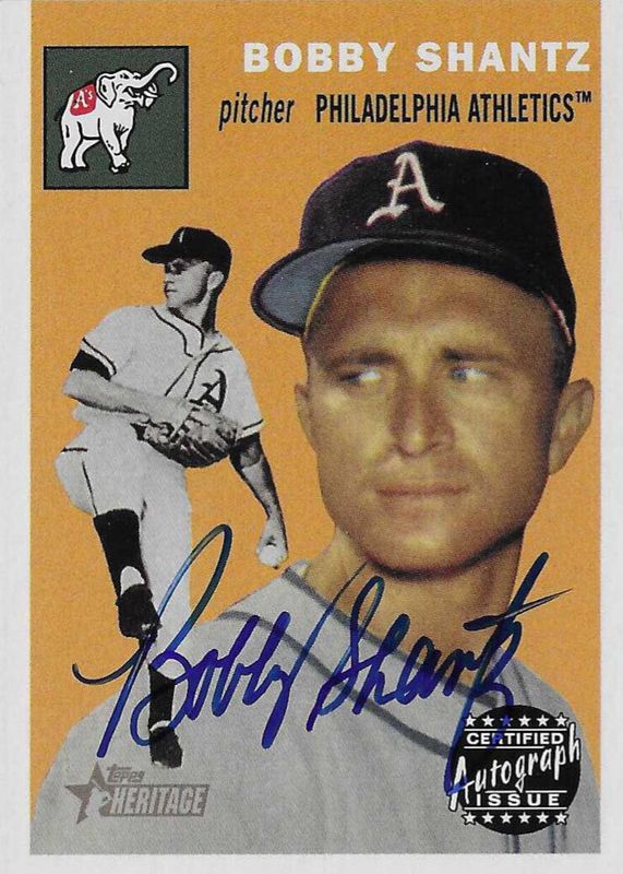 This card is 1 of 2 Bobby Shantz's card variations in the 2003 Topps Heritage set being tracked by Sports Card Investor, including Real One Autographs - Red Ink /54.