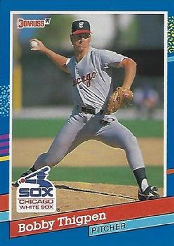 The Bobby Thigpen 1991 Donruss #90c Base card is 1 of 13 Bobby Thigpen's card variations in the 1991 Donruss set being tracked by Sports Card Investor, including #399 Base, #8 Base, #8a Base, #8b Base, and #8c Base.