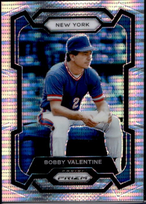 The Bobby Valentine 2024 Prizm #163 Pulsar /499 card is 1 of 30 Bobby Valentine's card variations in the 2024 Prizm set being tracked by Sports Card Investor, including Base, Blue Ice, Green, Green Ice, and Pink Ice.
