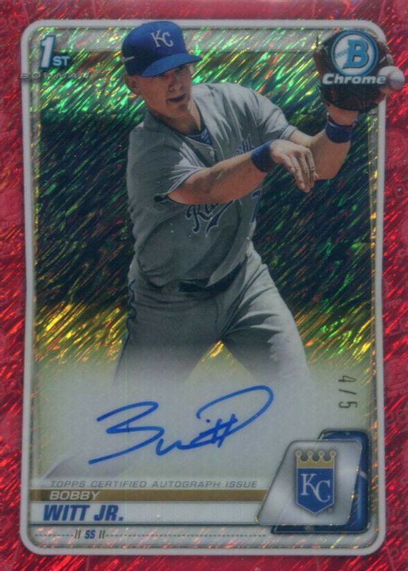 Bobby Witt Jr. 2020 Bowman #CPA-BWJ Chrome Prospect Auto - Red Shimmer Refractor /5 (1st) RAW Price Guide