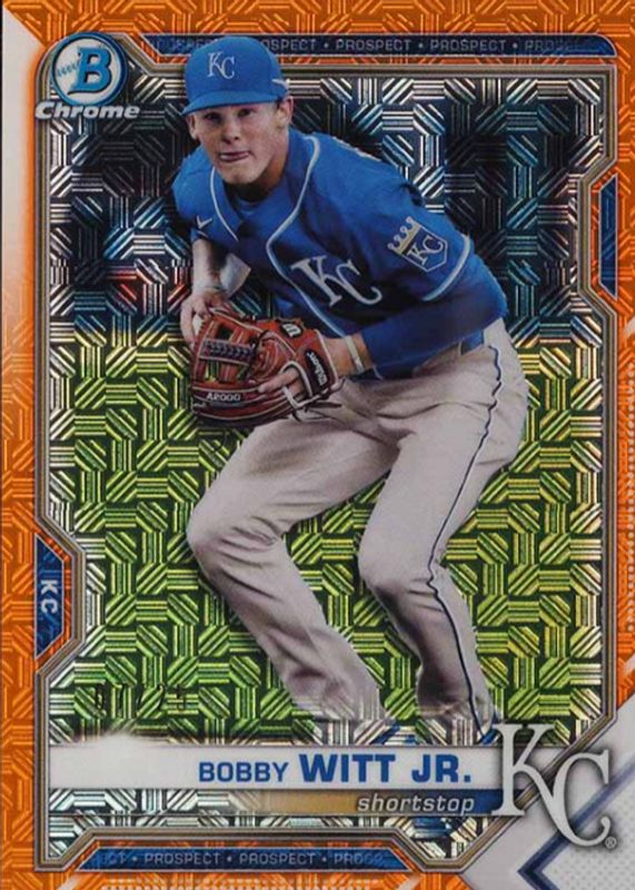 Auctions Ending Soon for Bobby Witt Jr. 2021 Bowman Chrome Mega Box #BCP-193 Prospects - Orange Refractor /25 RAW