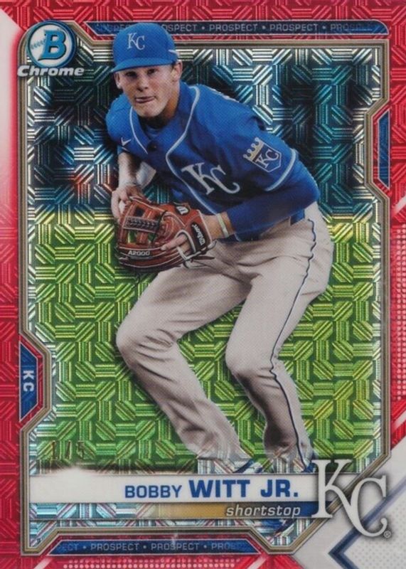 Auctions Ending Soon for Bobby Witt Jr. 2021 Bowman Chrome Mega Box #BCP-193 Prospects - Red Refractor /5 RAW