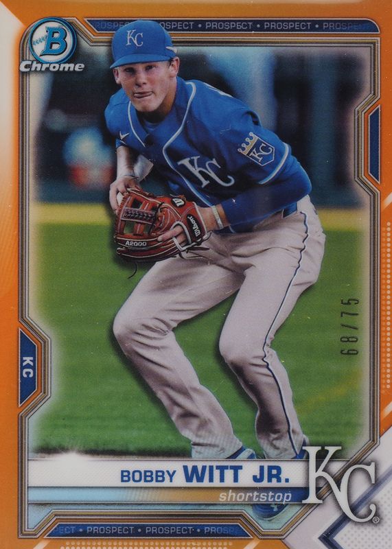 The Bobby Witt Jr. 2021 Bowman Chrome #BCP-193 Prospects - Yellow Refractor /75 card in Raw condition has not changed in price in the last 30 days and was last sold for $41.00 .