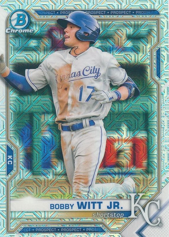 The Bobby Witt Jr. 2021 Bowman Mega Box #BCP-1 Chrome Prospects - Mojo Refractor card in Raw condition has moved up $1.01 (+25.2%) in the last 30 days and was last sold for $5.00 .
