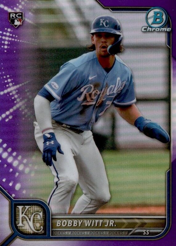 BOBBY WITT JR 2022 BOWMAN CHROME PURPLE REFRACTOR 150/250 ROOKIE RC #77 ROYALS