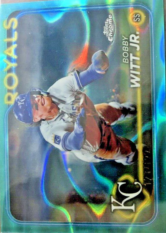 The Bobby Witt Jr. 2024 Topps Chrome #120 Aqua Lava Refractor /199 card in Raw condition has not changed in price in the last 30 days and was last sold for $18.49 .