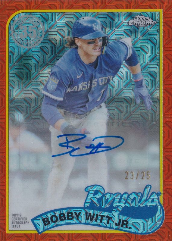 Auctions Ending Soon for Bobby Witt Jr. 2024 Topps Silver Pack #2T89C-11 1989 Chrome Promo Autographs - Orange Refractor (Series 2) /25 RAW